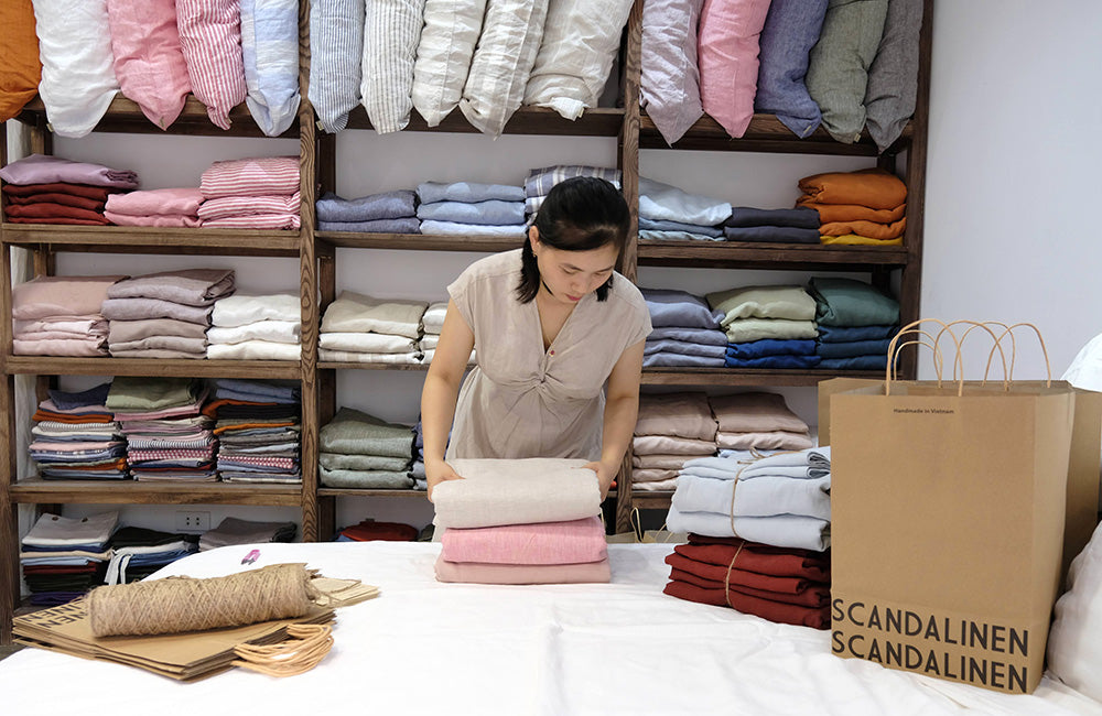SCANDALINEN provides Linen bedding, Linen products and other Vietnamese traditional fabric by 100% handmade and Made in Vietnam. We are wholesaler and retailer with our own factory and a variety of Linen Fabric both French Linen and blended Linen. We can customize as your orders with hand-embroidery, hand-quilting... style or your own measurement.