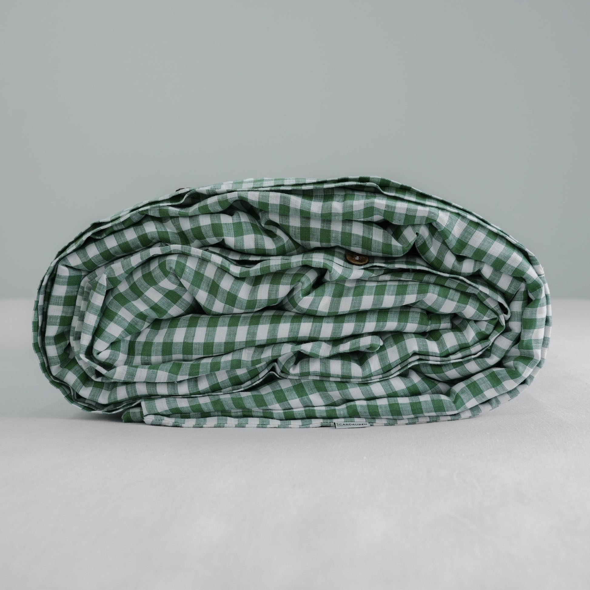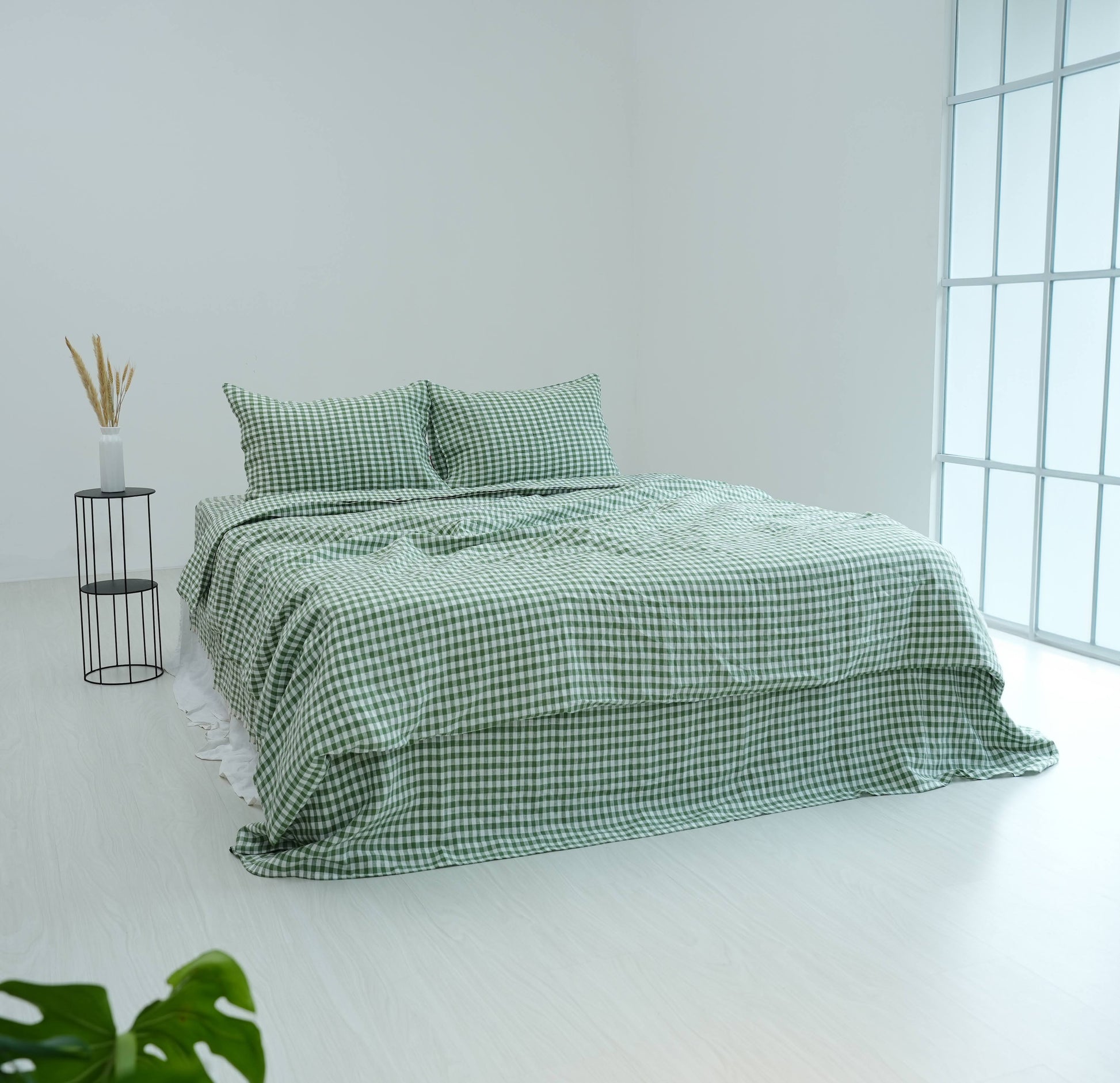 Green Caro French Linen Bedding Sets (4 pieces) - Yarn Dyeing