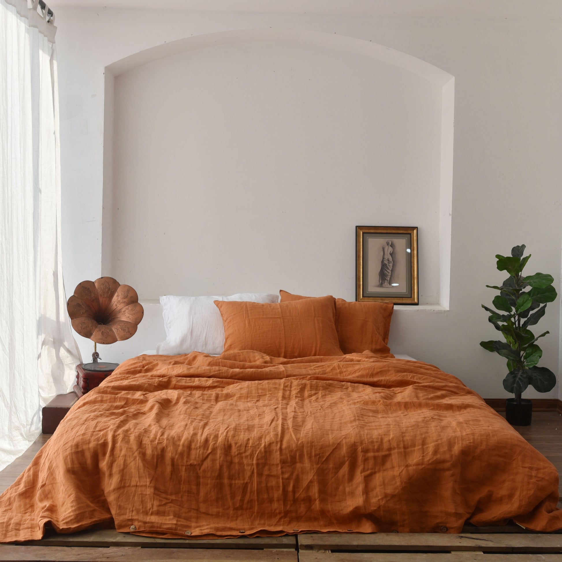 Orange French Linen Fitted Sheet - Yarn Dyeing 37