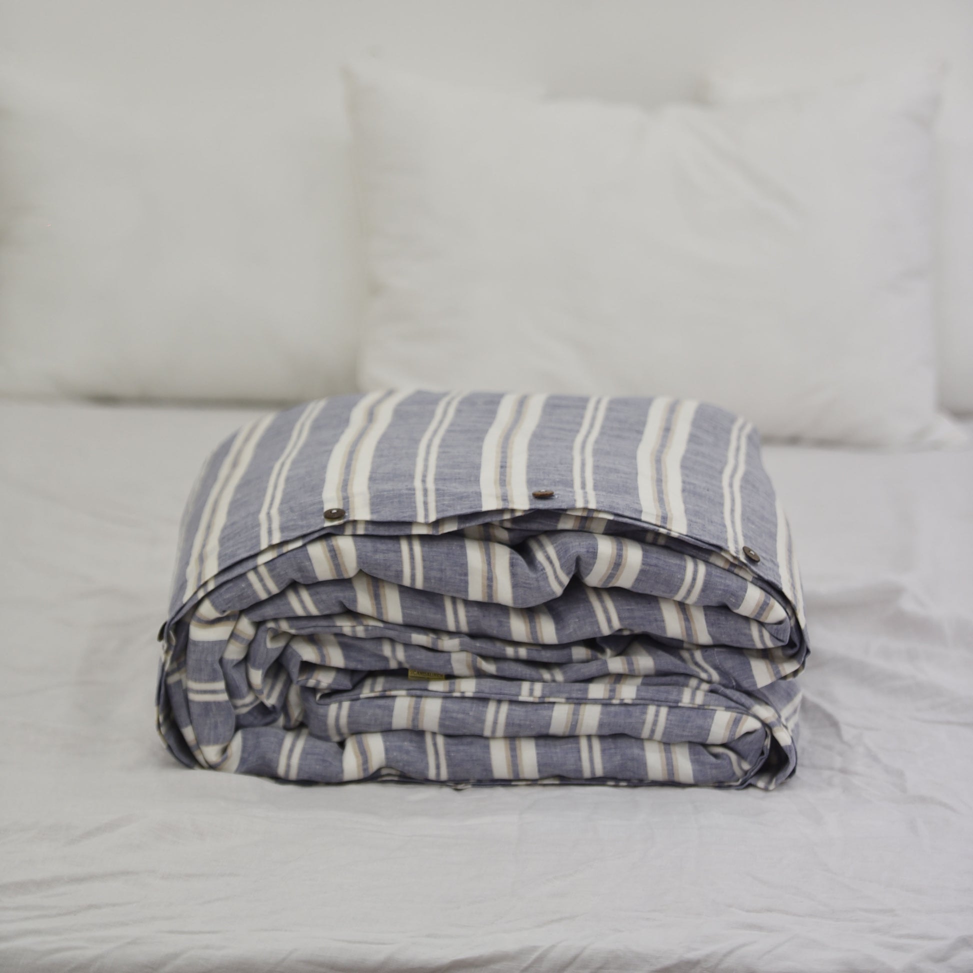 Wide Striped French Linen Duvet Cover - Yarn Dyeing 55
